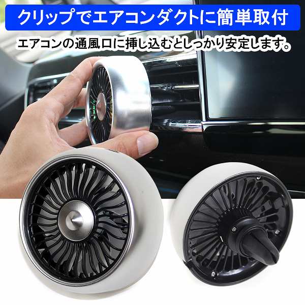車載用 シングルファン 扇風機 USB 車載用 車内扇風機 エアコン吹き出し口 車中泊 ポータブル LED 首振り 静音 熱中症対策